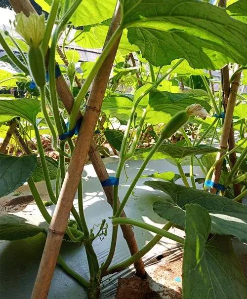 圖1、雙蔓整枝、幼瓜。