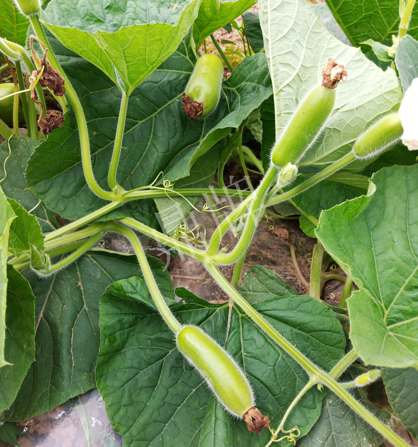 今年示范的新品種是“春棚如意”瓠瓜??炊ε铺峁┑馁Y料說明,是一個極早熟品種,前期坐果特別集中,這樣的品種正是我喜歡的,可以搶早賣上好價錢。因大棚安排滿了(大棚內(nèi)主要安排的是鼎牌絲瓜“優(yōu)比1號”、鼎牌甜瓜“玉奶香2號”、鼎牌南瓜“小胖墩”),所以,我在大棚只種了5分地的“春棚如意”瓠瓜,在露地種了1畝5分地,為了減少成本和勞動力,我在露地采用爬地栽培。