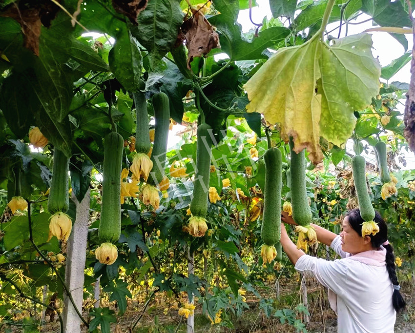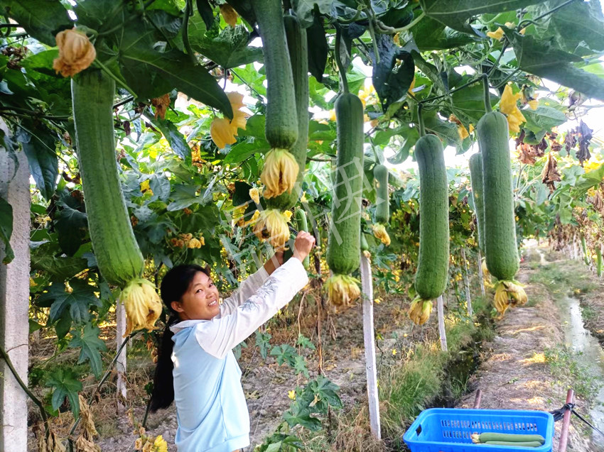 ▲ 看,“優(yōu)比1號(hào)”絲瓜的坐果狀況