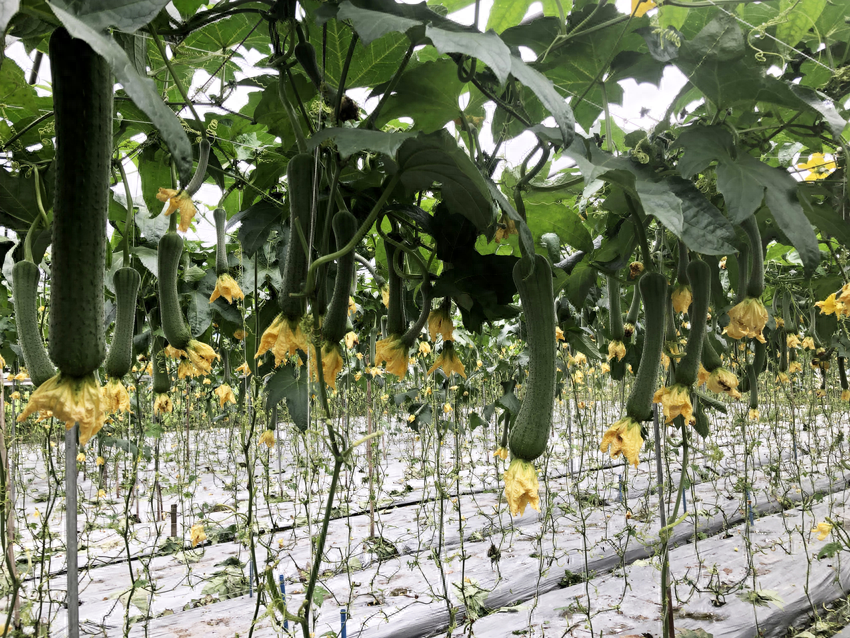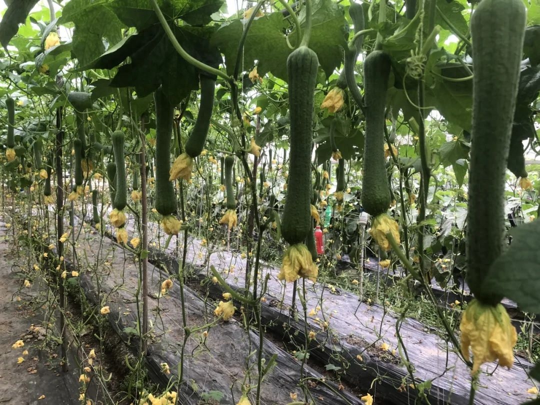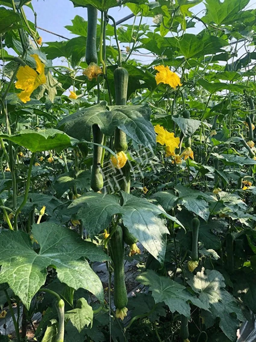 二是,果形漂亮,嫩瓜上市果長(zhǎng)28~30厘米、果徑5.5厘米左右,個(gè)個(gè)中棒形,很齊整,果皮微皺,耐運(yùn)輸;