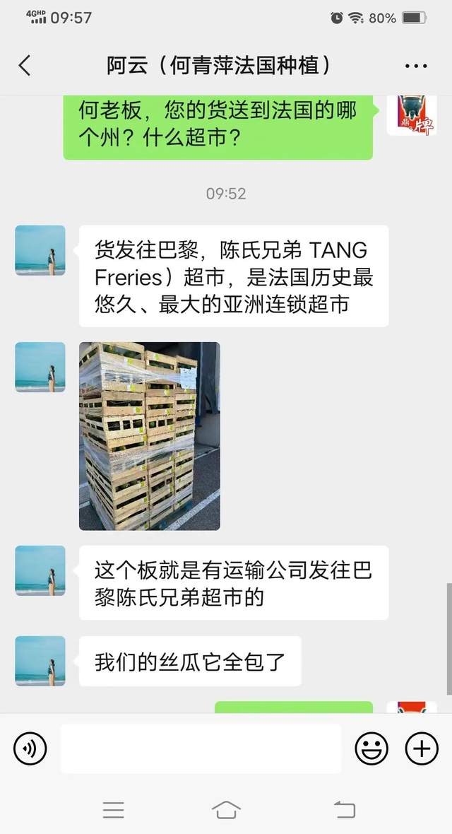 二是,我的“優(yōu)比1號(hào)”絲瓜種在法國,銷在法國。這邊農(nóng)產(chǎn)品價(jià)格普遍比國內(nèi)高。“優(yōu)比1號(hào)”品質(zhì)好,深受亞裔們喜歡,這幾年我的絲瓜都是直接被法國巴黎陳氏兄弟超市(法國歷史最悠久、最大的亞洲連鎖超市)收購的。據(jù)超市采購經(jīng)理說,與其它絲瓜相比,“優(yōu)比1號(hào)”品質(zhì)更好,更受歡迎;在超市的零售價(jià)折合人民幣每公斤45元。