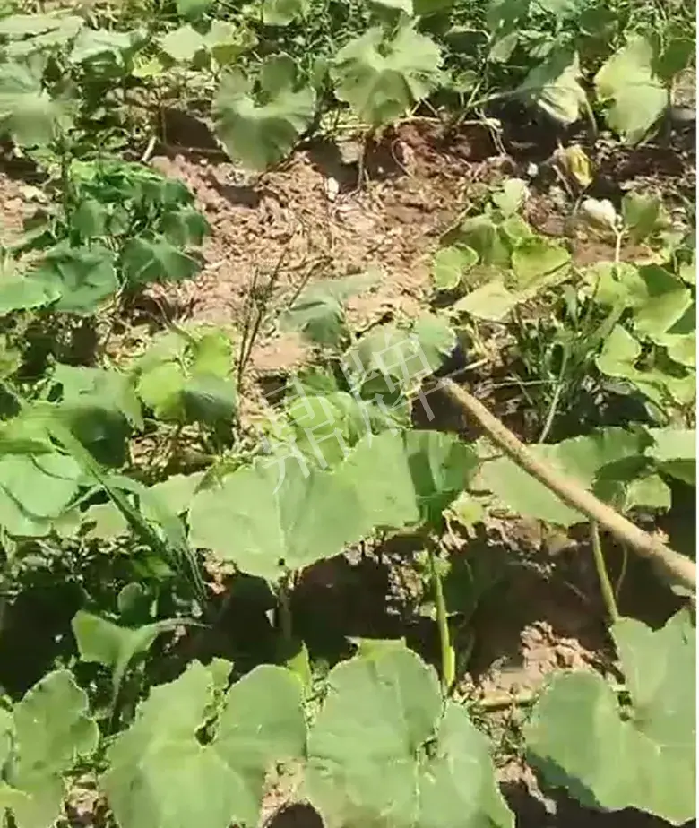 先給大家看一下在持續(xù)干旱高溫情況下,同時(shí)定植且相鄰種植的“小胖墩蜜本”南瓜和“某貝貝南瓜”的實(shí)拍情況。