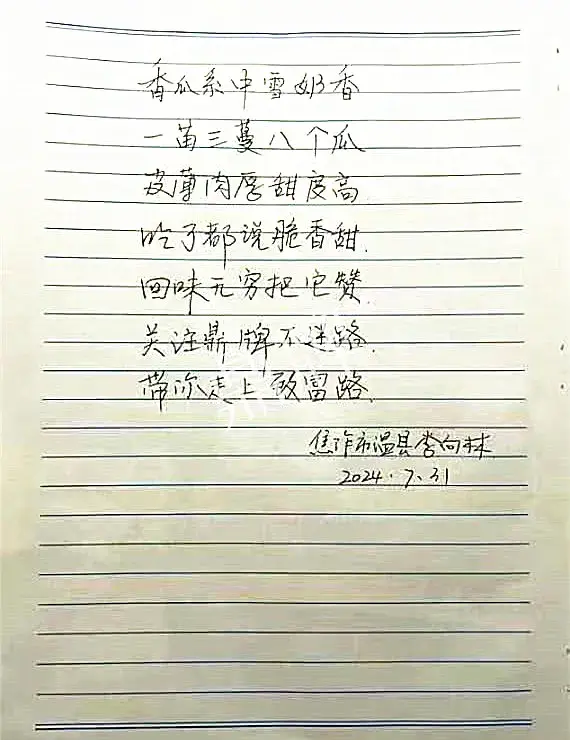 李老板獲得了可觀的收入,很是高興,于是親自動筆寫了一篇文章和一首詩,拍成照片后發(fā)給了鼎牌業(yè)務(wù)室。