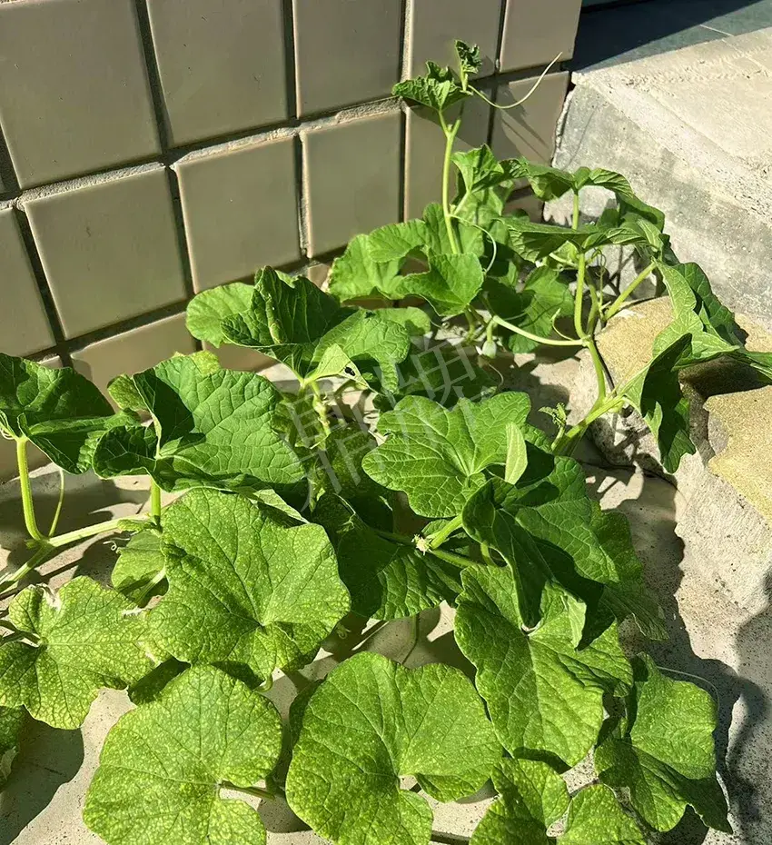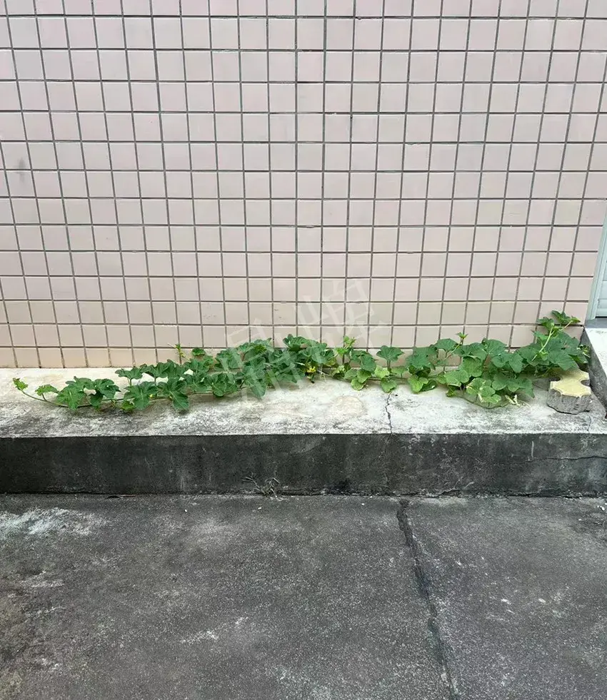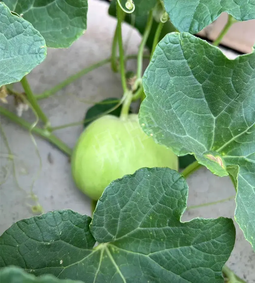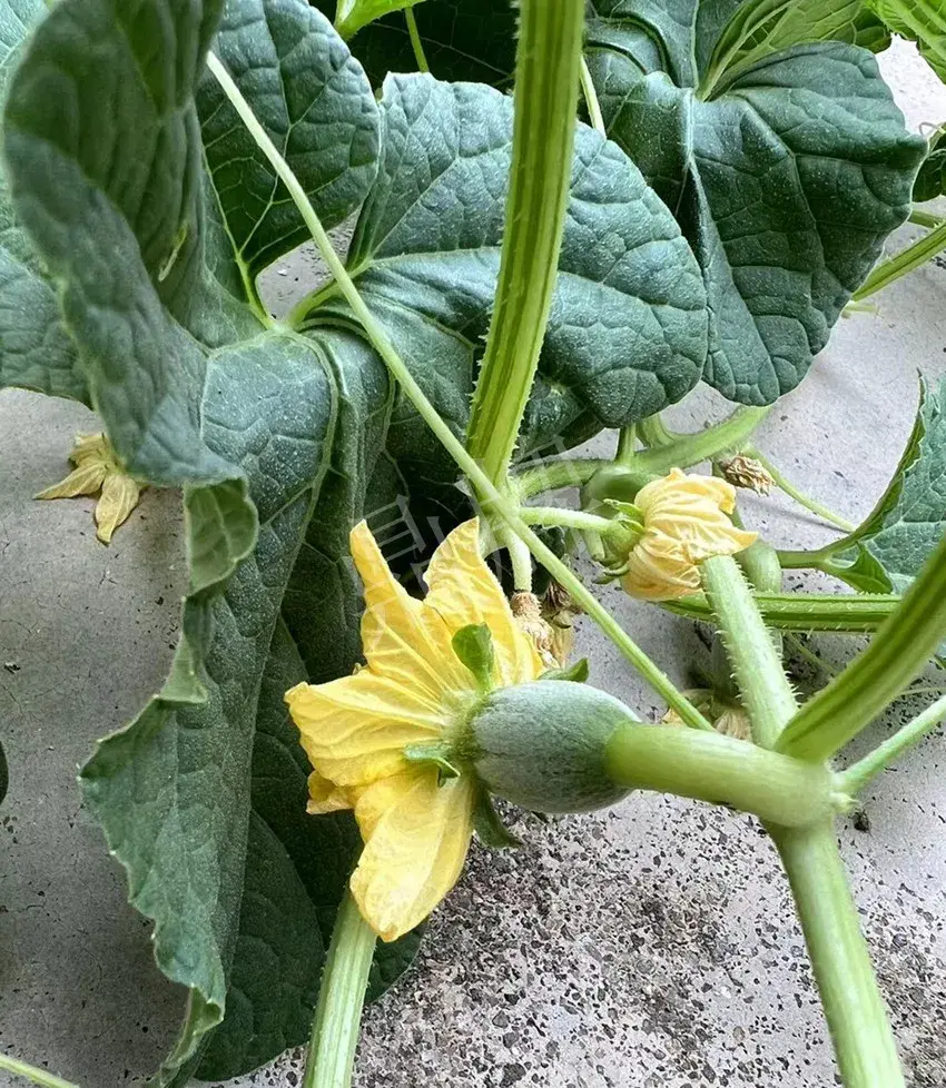 今日請各位看看本公司科研人員做的一個奇葩試驗——在特高溫的條件下,讓甜瓜苗在水泥板上生長。