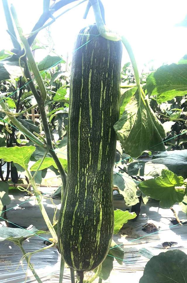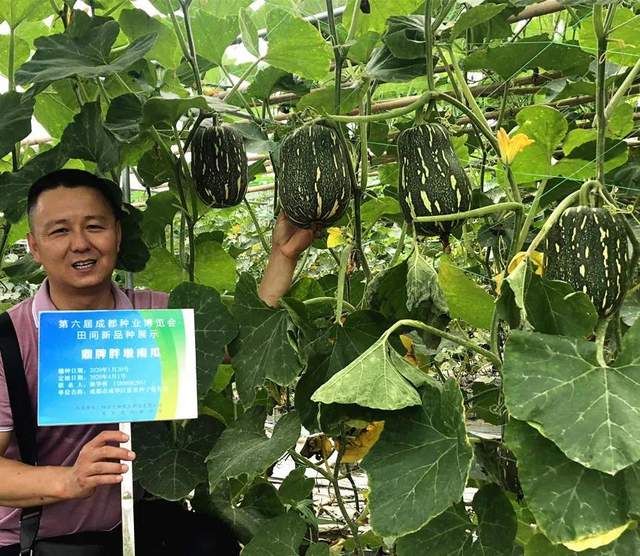 上面的圖片中,有一個新品種“胖墩”蜜本南瓜,是第一次與成都客戶見面。坐果之齊整,果形之端正,讓參觀的客戶留下了深刻印象;其品質(zhì)與“健美蜜本”南瓜一樣優(yōu)秀,生瓜都好吃!雖然胖、雖然墩,長得胖胖墩墩,但瓜的空腔小,同樣沒有“大肚子”。遺憾的是,會議期間還沒有成熟,未能品嘗。該品種將于今年10月1日開始向全國推廣。