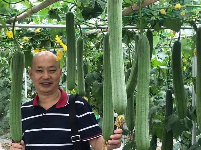 ▲ 客戶在展示“牛奶2號”絲瓜。