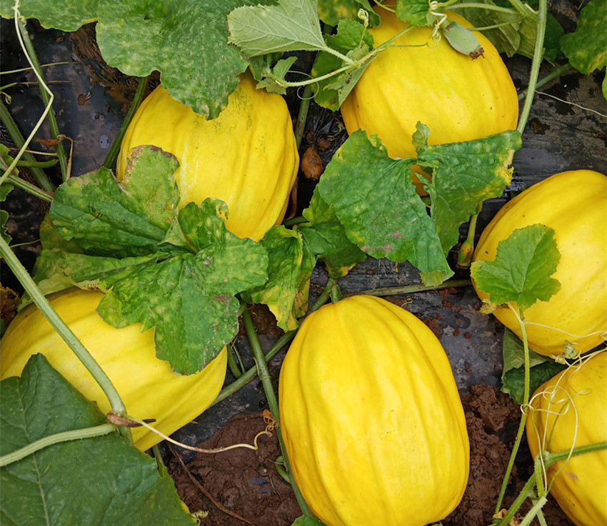 果大1.5公斤,以常規(guī)品種“丑八怪”為母本雜交而成,產(chǎn)量、品質(zhì)都有提高。皮韌肉脆,甜度高達(dá)18.5度。爬地1~2袋/畝、吊蔓5袋/畝。